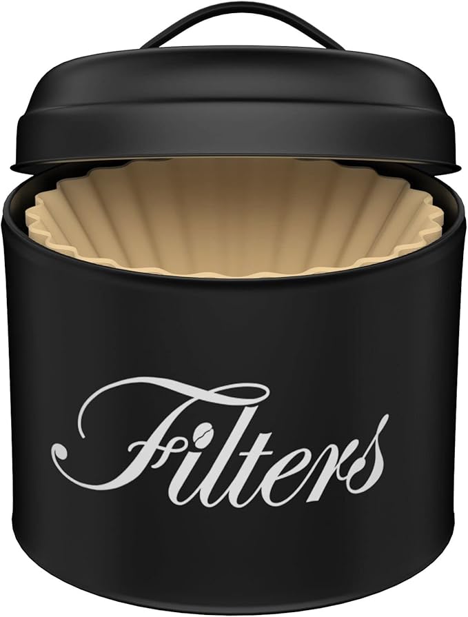 - 【BASKET COFFEE FILTER CONTAINER】 Our coffee filter holder with lid is capable of holding various sizes of round basket-shaped pleated filters commonly found in the market, a sizeable internal capacity is enough to store your daily coffee filters, it is a perfect addition to your coffee bar decor