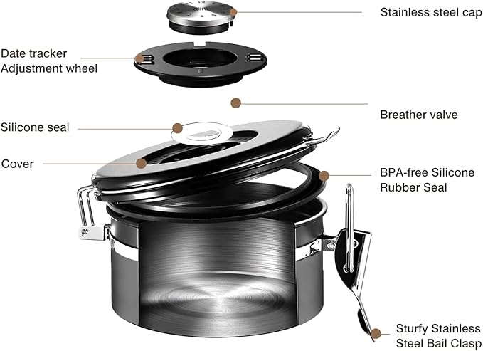 - DATE TRACKER: Use the date tracker on the lid of the coffee can to set the storage or expiration date.This will help you track the freshness of your coffee to prevent expiration and waste and enjoy fresh coffee at the right time