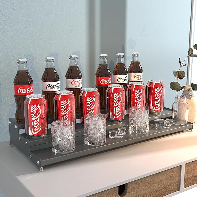 Spice Rack Organizer for Cabinet, 3 Tier Expandable Spices Storage, Great for Kitchen Cabinets, Cupboard,Pantry and Countertop More(Gun-Gray, 1 PACK/GUN-GRAY)