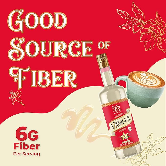 ChocZero Sugar Free Vanilla Syrup for Coffee - Keto Flavoring Syrups - Low Calorie Simple Syrup for Flavored Drinks – 25.4 Fluid Ounces