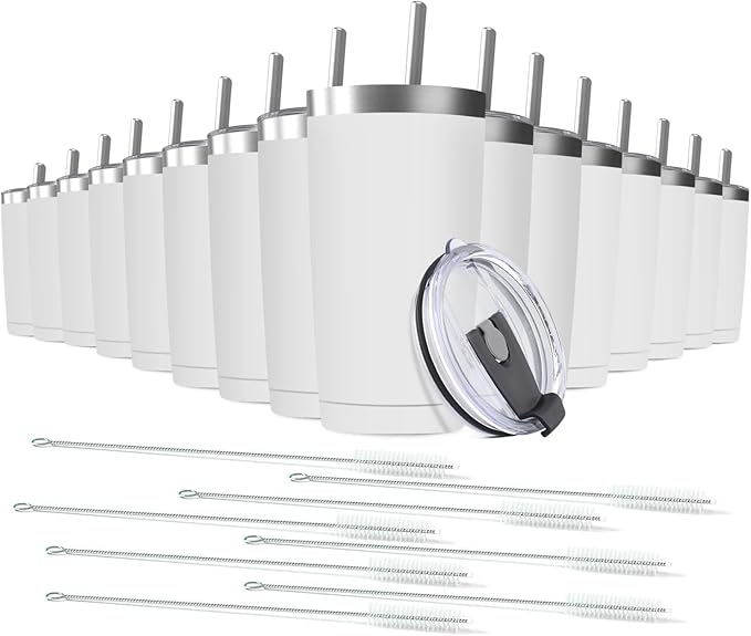 16 pack 20 oz Stainless Steel Insulated Tumbler with Straw and Lid, Double Wall Travel Coffee Mug Vacuum Insulated Bulk Tumbler, Suitable for Vehicle Cup Holders (White)