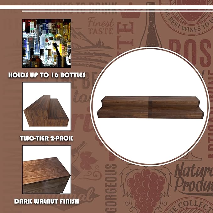 - HIGH QUALITY: Our liquor display shelf is made of high-quality solid wood that has been finely crafted to create a satisfying storage option for your collection. With excellent craftsmanship and attention to detail, our liquor bottle display is built to last and provide a reliable storage solution for your collection.