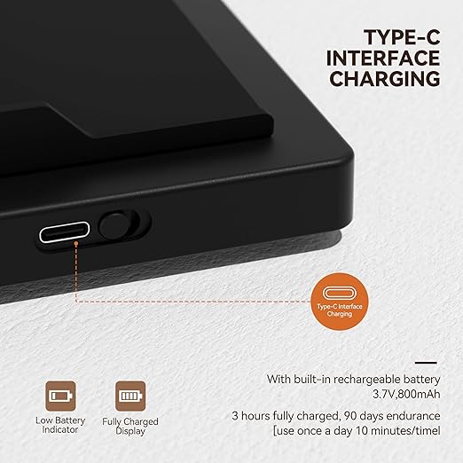 - ☕【USB TYPE-C RECHARGING】Built-in 800mAh rechargeable lithium battery. Environmentally friendly and safe, can be fully charged in 3 hours and last for 80 days (use once a day, 10 minutes/time) * Open physical switch, otherwise charging is invalid.