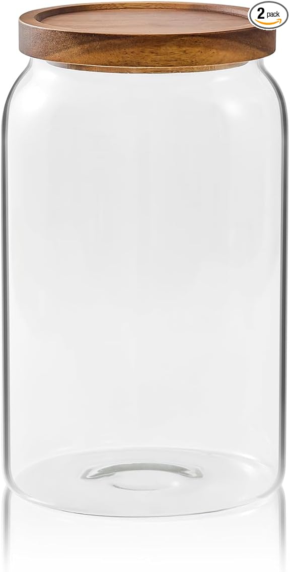Sweejar Large Glass Candy Jars with Wooden Lids, 1 Gallon Glass Jar with Lid, Sugar/Flour Storage Containers, Big Glass Canisters with Airtight Lid, 1 Pack, Hand Lid