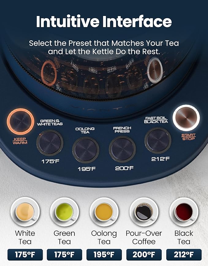 - The Viante Difference – Count on us to deliver the experience of world-class flavor and service. Your temperature control electric kettle is backed by our commitment to your complete satisfaction.