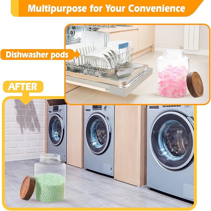 - 【WIDE APPLICATIONS】 Glass kitchen canisters for pantry organization and storage are suitable for storing various dried ingredients to retain their freshness, with clear glass jars, you can easily see inside and quickly find the ingredients you need.Glass jars with wood lids perfect for storing dry food , such as,cookies,dried beans,pepper,oatmeal,jams,chutneys, rice, flour, tea, coffee, biscuits, candy,cheese,flour, sugar, seeds,etc. Keep your kitchen tidy and safe,saving space and convenient .