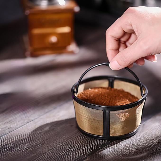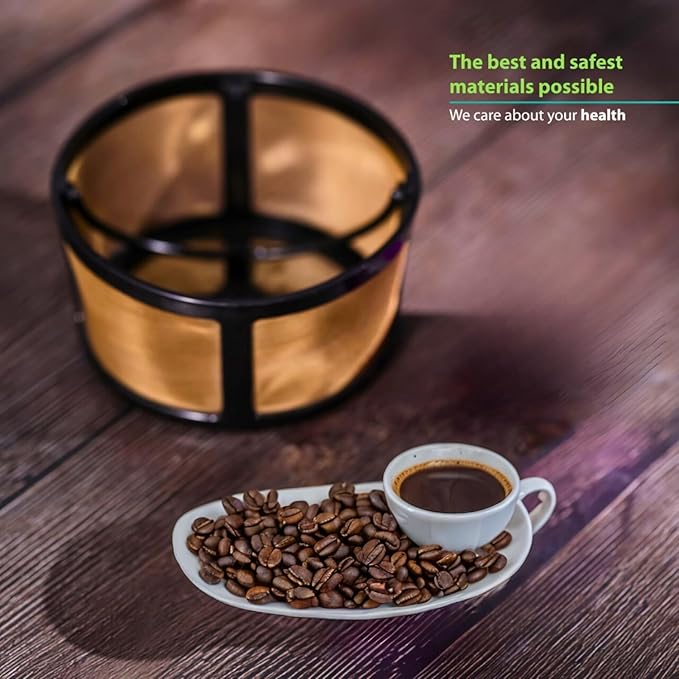 - GOLD TONE MESH FILTER : Built for durability and longevity, the reusable Gold Tone Mesh Filter Basket by PureHQ are made from premium material and rigid design. The special crafted mesh stainless steel micro-eteched design made to prevent clogs, leaks and at the same time maximize water dispersion.