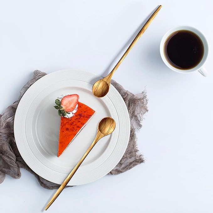 • 【ECO-FRIENDLY OLIVE WOOD】Our olive wood lumber is sourced from Southern Italy, processed in China and exported all over the world. The spoon is made of one-piece hardwood, a highly heat-resistant, sturdy, food-safe material. No stitching! No deformation! odorless! BPA Free and Non-Toxic! For mixing coffee, tea, beverages, honey, cocktails; also for chefs to taste.