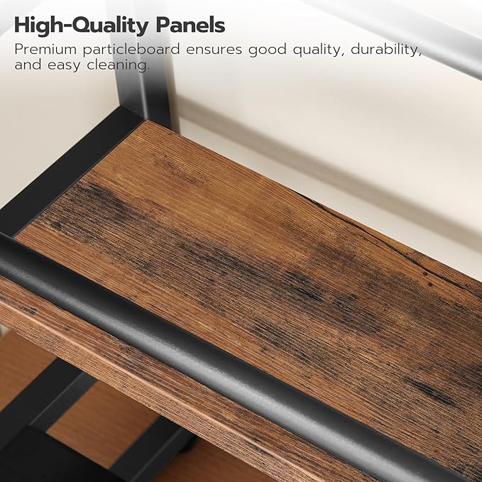 HOOBRO Coffee Syrup Rack Organizer, 3-Tier 12-Bottle Syrup Holder Stand for Coffee Bar, Wine Rack Countertop Storage Rack for Syrup, Wine, for Kitchen Coffee Station, Rustic Brown and Black BF38JJ01