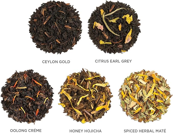 - BEAUTIFULLY PACKAGED TEAS in an exclusive collaboration celebrating design, connection, and creativity. The open lid reveals a detailed tasting menu and 20 teas. Our gift-ready presentation makes the perfect tea lovers present or addition to a visionary collection.
