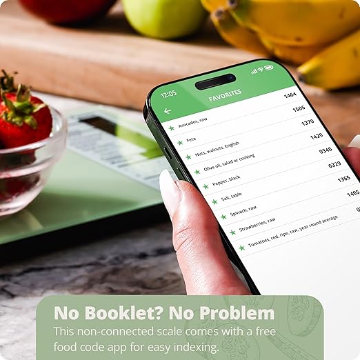- Preloaded & Customizable: Preloaded with nutrition data for 2,000 foods, plus space for 99 custom entries. Note: This is a standalone scale and does not sync with any devices. A free companion app is available for food code lookup only (not for logging or tracking).