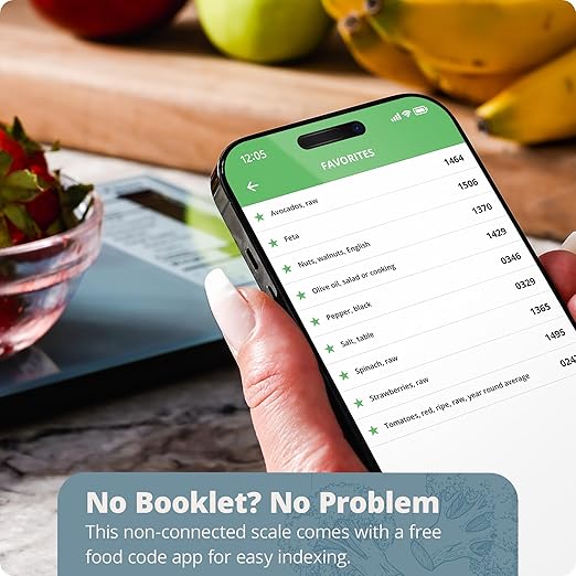 - Preloaded & Customizable: Preloaded with nutrition data for 2,000 foods, plus space for 99 custom entries. Note: This is a standalone scale and does not sync with any devices. A free companion app is available for food code lookup only (not for logging or tracking).
