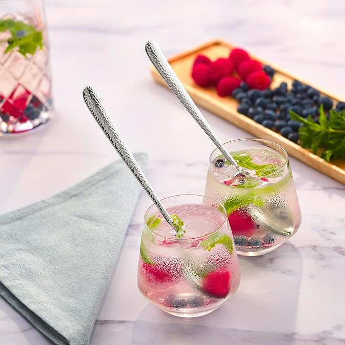 Hudson Essentials Hammered Iced Tea Spoons, 18/10 Stainless Steel Long Handle Spoons for Stirring Cocktails, Tea, Coffee, Set of 6 - Bergamo