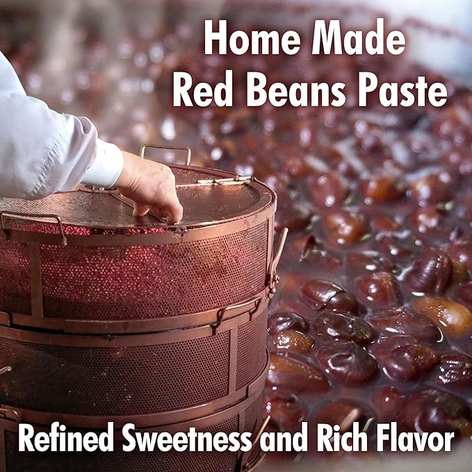 - RICH, HOMEMADE SWEET RED BEAN PASTE – The filling is made from coarsely mashed, slowly cooked sweet red bean paste, prepared to highlight the natural richness of red beans. This refined paste brings depth of flavor and smoothness that sets these dorayaki red bean pancakes apart.