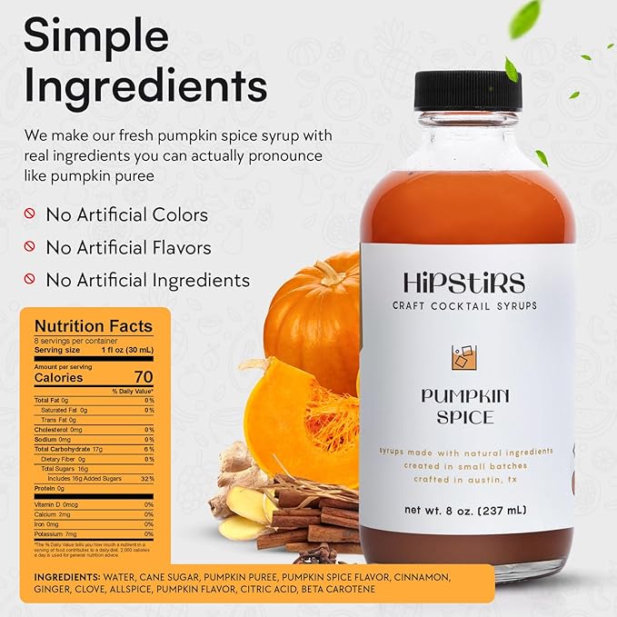 - The HipStirs Promise - We want your experience with our craft pumpkin spice sauce for drinks to be perfect. If for any reason something is wrong with your pumpkin spice simple syrup let us know and we'll send you a new one
