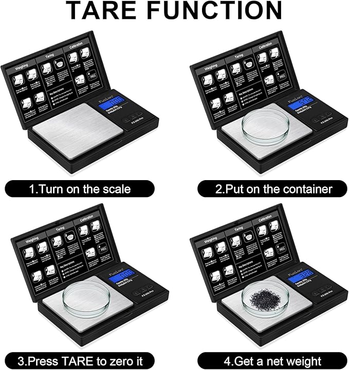 - PRO Features: Gram scale included 100g calibration weight, 2 AAA batteries. Comes pre-calibrated, also can be easily calibrated. Tare Function and smart Auto-off function.