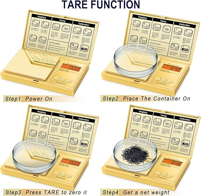 - Tare Function & Clear Display: The tare function allows for easy net weight measurement, while the back-lit LCD display ensures clear readings in any lighting condition.