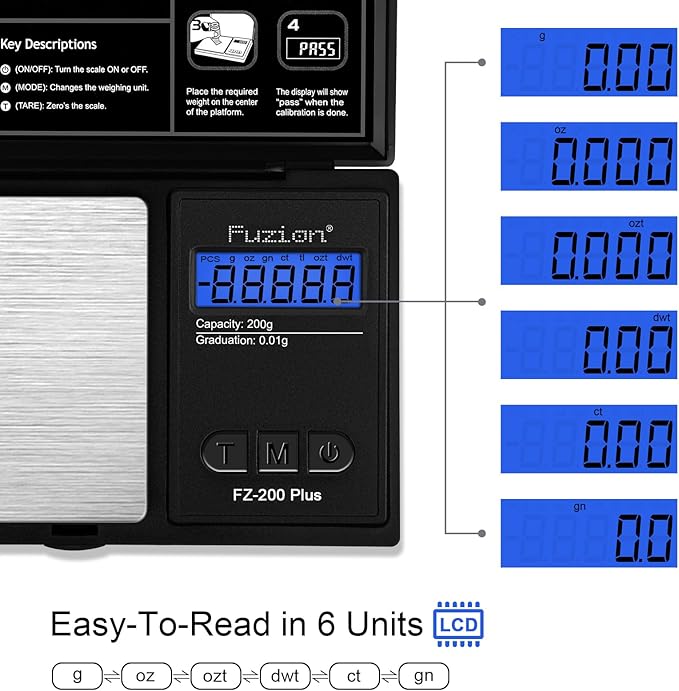 - Multiple Units Display: Pocket Scale 6 Units of Measurement: Grams, Ounces, Grains, Troy Ounces, Pennyweights, Carats. Back-lit LCD Display, Ultra Fast Reading.