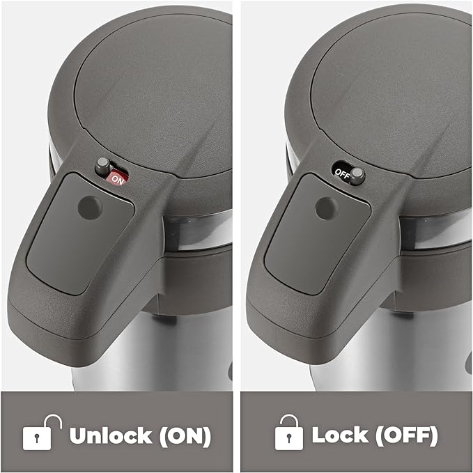 - DISPENSES EASILY AND QUICKLY - This coffee dispenser can dispense your favorite beverage easily and safely with one press without lifting and tilting the entire airpot, this can prevent your drink from leaking out.