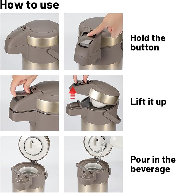 - DISPENSES EASILY AND QUICKLY - This coffee dispenser can dispense your favorite beverage easily and safely with one press without lifting and tilting the entire airpot, this can prevent your drink from leaking out.