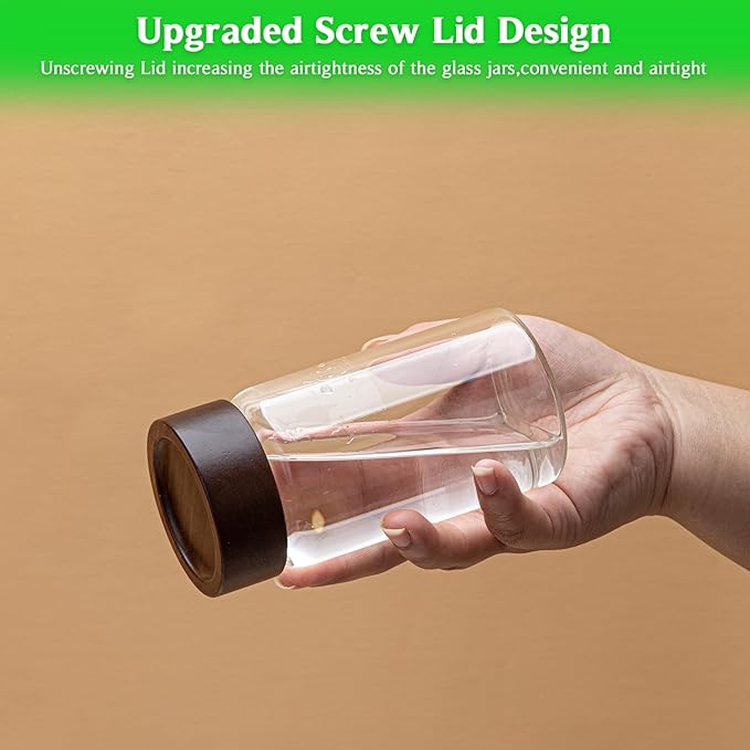 - - 【WIDE APPLICATIONS】Glass canning jars storage are suitable for storing various dried ingredients to retain their freshness.Glass jars with wood lids perfect for storing dry food , such as,cookies,dried beans,pepper,oatmeal,jams,chutneys, rice, flour, tea, coffee, biscuits, candy,cheese,flour, sugar, seeds,etc. Keep your kitchen tidy and safe,saving space and convenient .