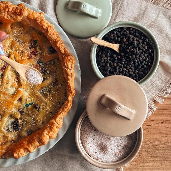 - SMART SALT-LOVING DESIGN: Where are all my salt loving people at! We love to cook, we love flavor, and we want to keep those important gourmet herbs and seasonings handy in the kitchen. Designed large enough to grab a pinch with your fingers, for controlled salt distribution. 🤌 The set comes with Lids and Spoons if you are the sanitary type. She's also not just for salt, she's versatile. Keep things organized by using your cellar for trinkets, rings, coins, buttons, etc.