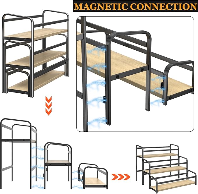 - Convenient Spice Rack for Kitchen: Due to the flexibility of this shelf, you can easily disassemble and use it. The number of shelves and floor area can be quickly changed, so that it can be flexibly applied to cabinets and kitchen countertops as a condiment organization display rack.