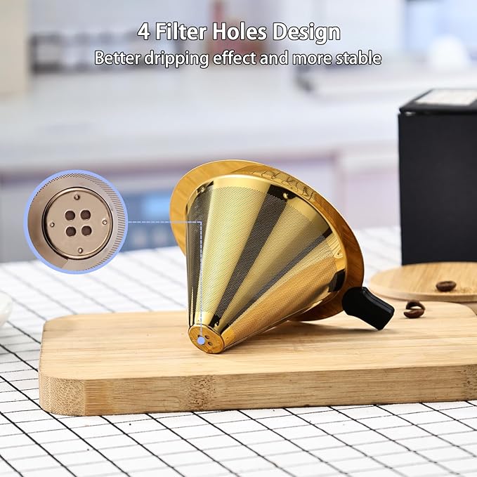 • 【Easy to Clean】Our coffee filters, just rinse with clean water or put in the dishwasher, we also recommend descaling your pour over filter every 2-3 weeks by soaking it in distilled vinegar and warm water solution.