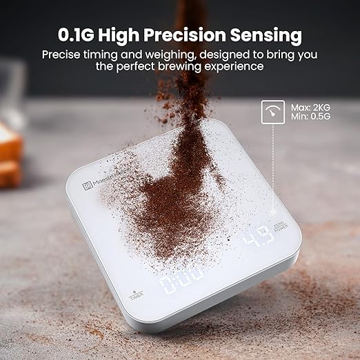 - 【0.1g High Precision】This digital kitchen coffee scale is equipped with high-precision sensors and a reliable microprocessor, guaranteeing precise measurements every time. With an accuracy of 0.1g and a range of 0.5g-2000g, it is particularly well-suited for espresso and pour-over brewing methods, ensuring impeccable results