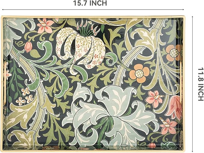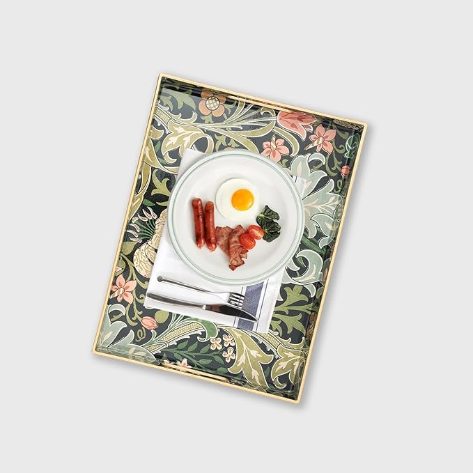 - 【 Preferred material 】 This tea trays for serving made of thickened material, it is plastic, with smooth surface and convenient cleaning, rectangle tray with vintage printing design
