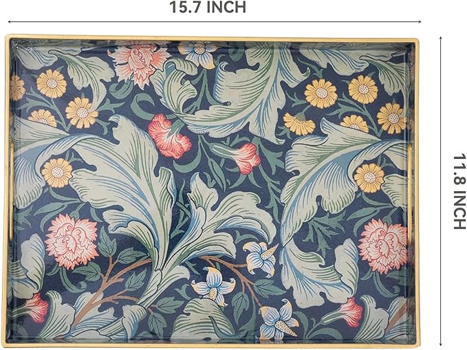 - 【 Preferred material 】 This tea trays for serving made of thickened material, it is plastic, with smooth surface and convenient cleaning, rectangle tray with vintage printing design