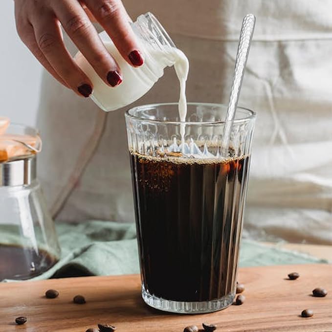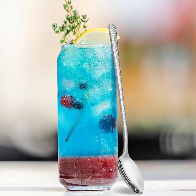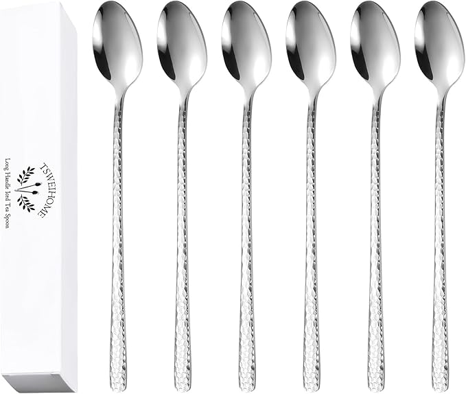 8.4-Inch Hammered Ice Tea spoon Long Handle, Coffee Spoon, Ice Cream spoons, Stainless Steel Cocktail Stirring Spoons, Tea spoon,Set of 6