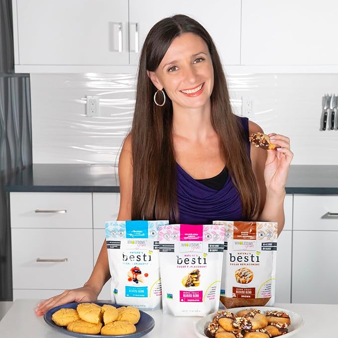 Wholesome Yum Besti Natural Brown Sugar Substitute - Keto Brown Monk Fruit Sweetener Blend With Allulose (No Erythritol) - Non GMO, Zero Carb, Zero Calorie, Sugar Free, No Aftertaste (12 oz)