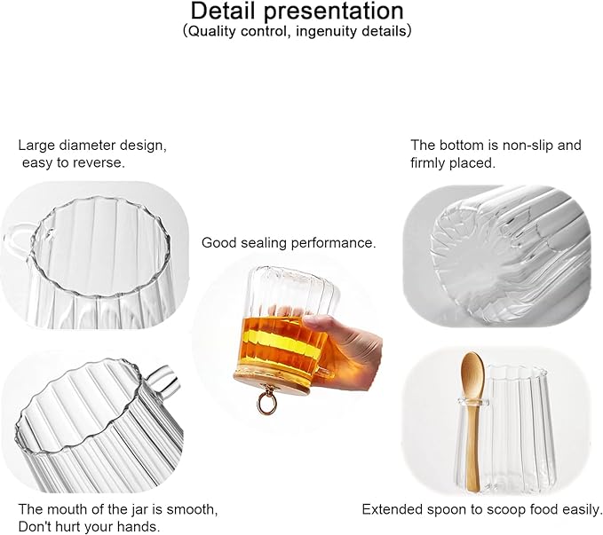 - Function: Very suitable for storing and displaying coffee beans, tea, biscuits, candy, nuts, oats, jam, dried fruit, beans, spices, sugar, salt and other snacks and food. High-definition transparent glass sealed jar, you can clearly see the food, to observe the food surplus.