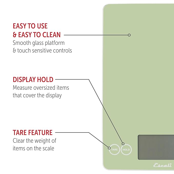 Escali Arti Classic Digital Coffee Scale Espresso Scale and Countertop Food Scale, 15-Pound Capacity, Green