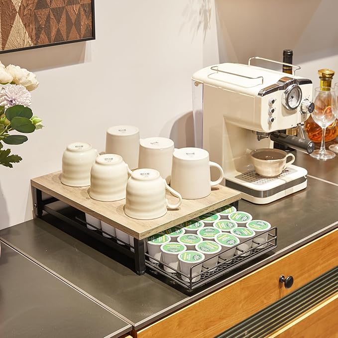 - 【EASY TO USE AND CLEAN】: The sliding drawer is easy to slide in and out, but it won't fall out on the floor. You can take out your coffee and enjoy it anytime. When the coffee station is dirty, just need to wipe.
