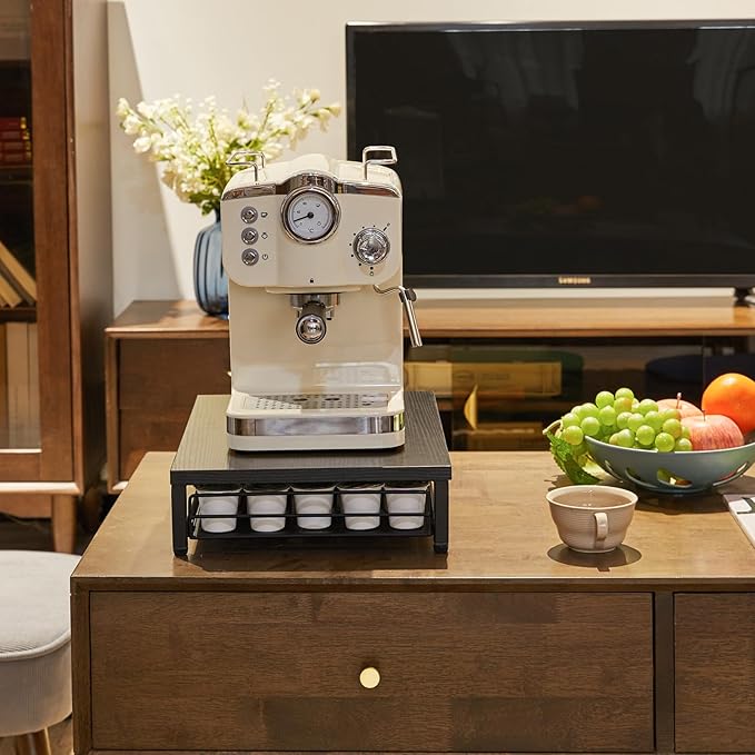 - 【STURDY AND SIMPLE DESIGN】: The capsule pods storage organizer gives your quiality coffee a quiality storage. This coffee pod holder is firm and space saving. You can also put your coffee brewer or coffee maker on its large top suiface.