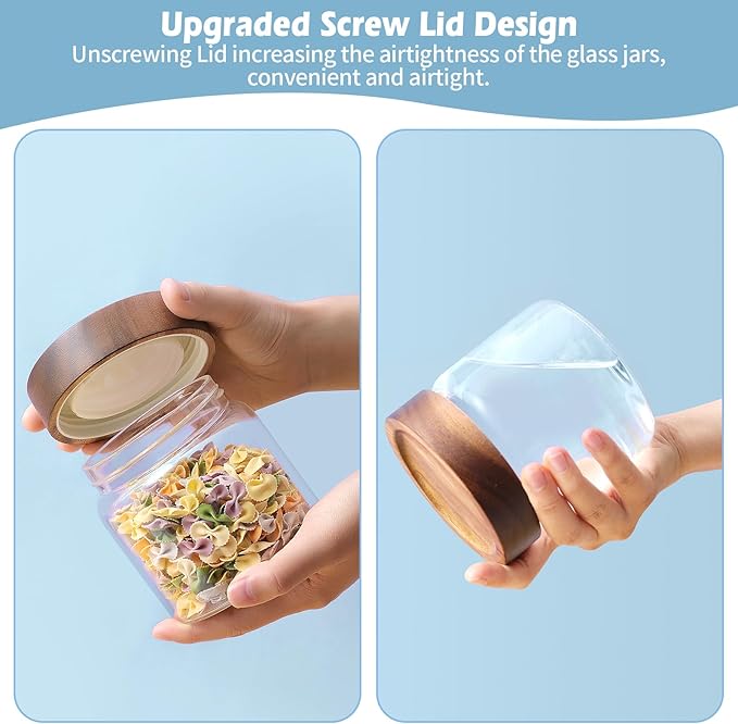 - - ★CRYSTAL JAR: Airtight Glass Food Storage Jar with screw top lid .can be placed anywhere without taking up space, such as cabinets,countertop, kitchens, dining rooms, living rooms, bars, display shelves, refrigerators,Breakfast table,Distributed food box.etc.