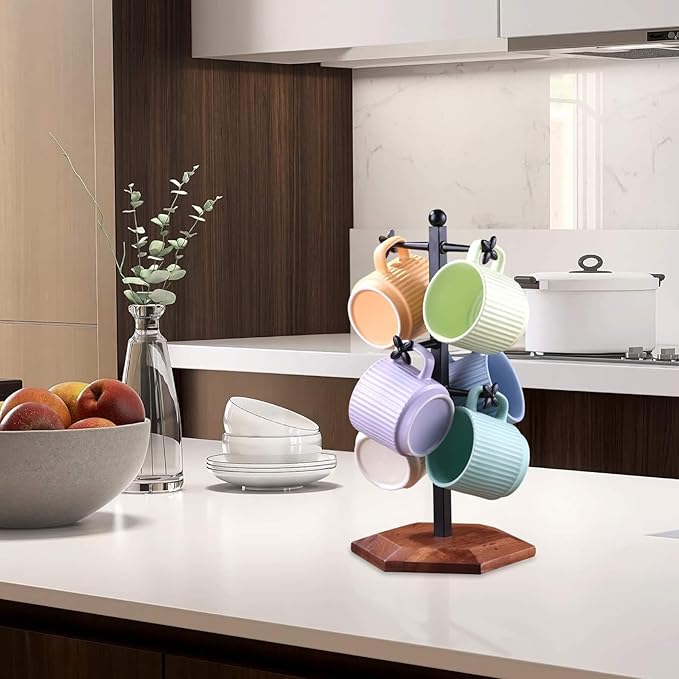 - Compact and Space-Saving: This mug holder features a compact vertical design that can store up to 6 large mugs, saving valuable counter space. It's perfect for small kitchens and coffee bars. **Note: Mugs are not included**