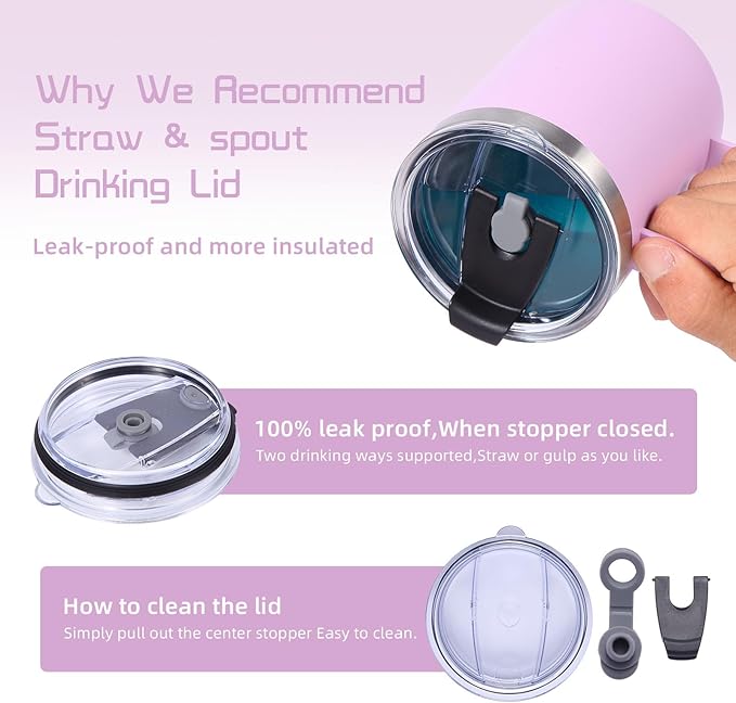 - 【Healthy and premium materials】The stopper is removable and each cup comes with a complimentary straw brush,can be cleaned thoroughly.Using high quality materials,inside and outside are made of food grade 18/8(304) stainless steel,lead-free,strong insulation,corrosion resistance.Durable,never rust.The straw spout and leakage stopper are made of food-grade rubber,BPA-free and odorless.