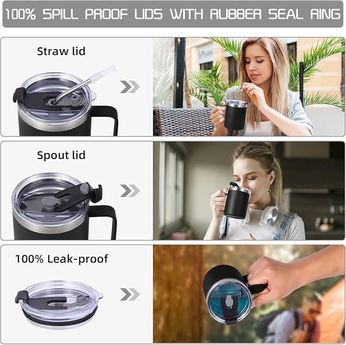 - 【1 Lids of 2 functions】Volhoply 12oz insulated coffee mug,made for the coffee lover.Lift the spout lid to gulp,or savor with the straw,your needs all be satisfied,make drinking coffe no longer monotonous,at home,office,garden,enjoy a leisurely coffee anytime,anywhere!