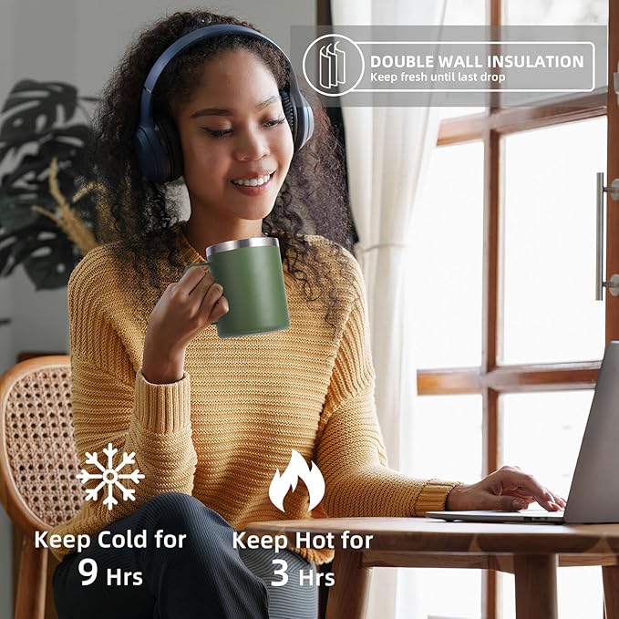 - 【Double wall insulation technology】Volhoply's mugs are made with double-layer vacuum insulation technology,which can keep your drinks warm for more than 3 hours and cold for more than 9 hours,both indoors and outdoors.You can enjoy your favorite drinks for a long time,keeping every sip fresh until the last drop!