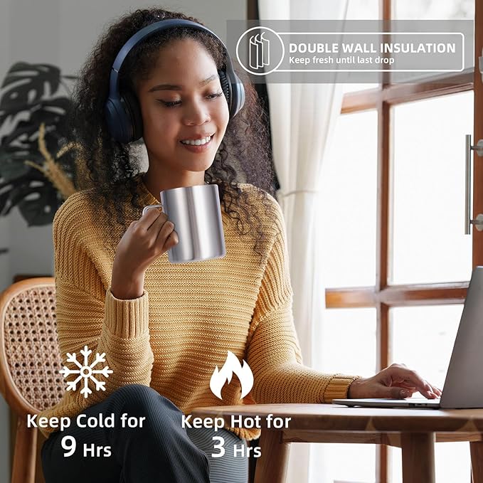 - 【Double wall insulation technology】Volhoply's mugs are made with double-layer vacuum insulation technology,which can keep your drinks warm for more than 3 hours and cold for more than 9 hours,both indoors and outdoors.You can enjoy your favorite drinks for a long time,keeping every sip fresh until the last drop!