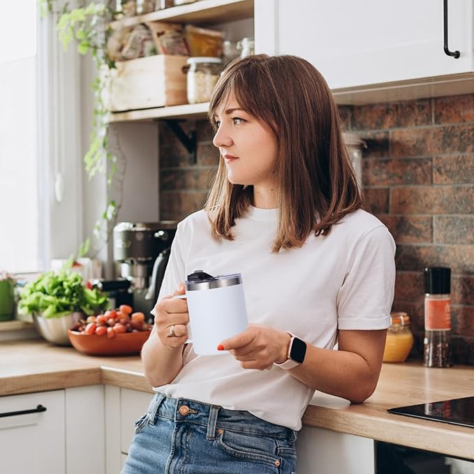 Volhoply 12oz Insulated Leakproof Coffee Mug with Flip & Straw Lid Bulk 4 Pack,Not Suitable for Sublimation,Double Wall Vacuum Stainless Steel Travel Tumbler Cup with Handle(White,4 Set)