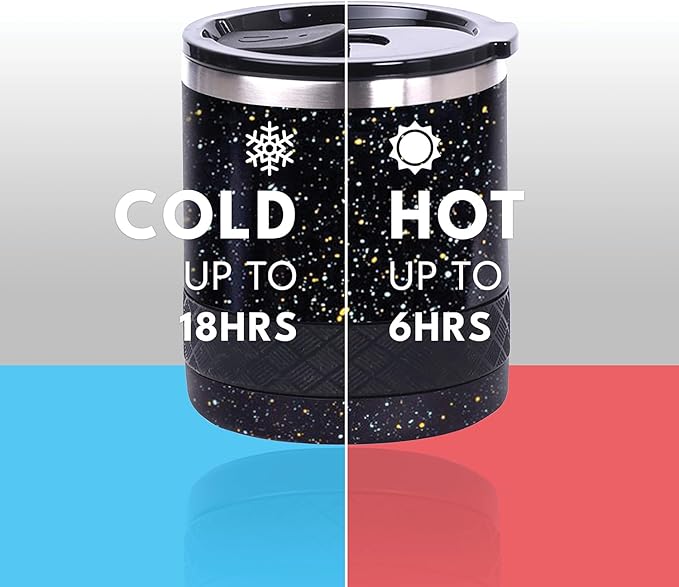Elemental Recess Lowball Tumbler, 10oz Triple Wall Stainless Steel Cup with Non-Shattered Tritan Lid, Insulated Whiskey Glass, Insulated Coffee Tumbler Mug for Hot & Cold Drinks - Black Speckle