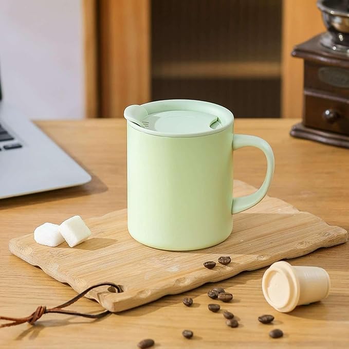 12oz Insulated Camping Coffee Mug with Lid & Handle, Double Wall Stainless Steel Vacuum Travel Coffee Cup, Reusable Tumbler for Home Office Camping - Green