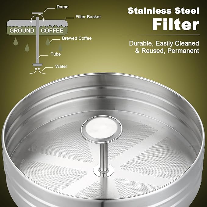 - Permanent Coffee Filter: There is a stainless steel filter comes with a coffee urn. It is durable, easily cleaned and reusable. The filter is so fine to reduce sediment. It can improve coffee quality