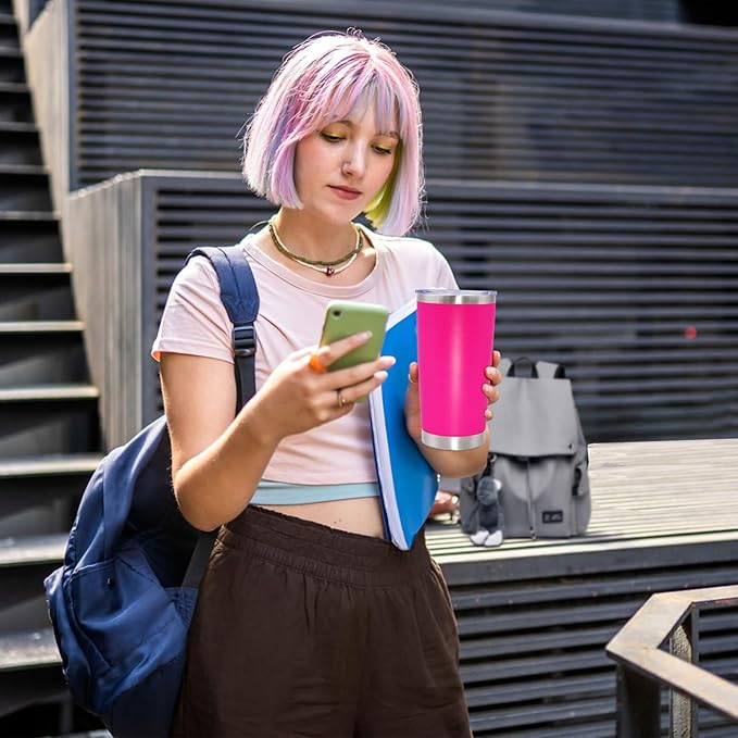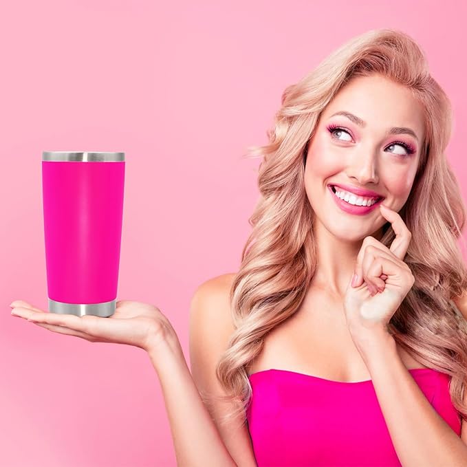 20 oz Tumbler Coffee Travel Tumblers Bulk with Lid Stainless Steel Double Wall Vacuum Insulated Mug Powder Coated Cups fit Car Cupholder for Hot and Cold - Hot Pink, 1Pack