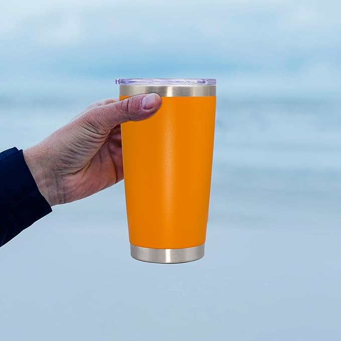 20 oz Tumbler Coffee Travel Tumblers Bulk with Lid Stainless Steel Double Wall Vacuum Insulated Mug Powder Coated Cups fit Car Cupholder for Hot and Cold - Orange, 8Pack