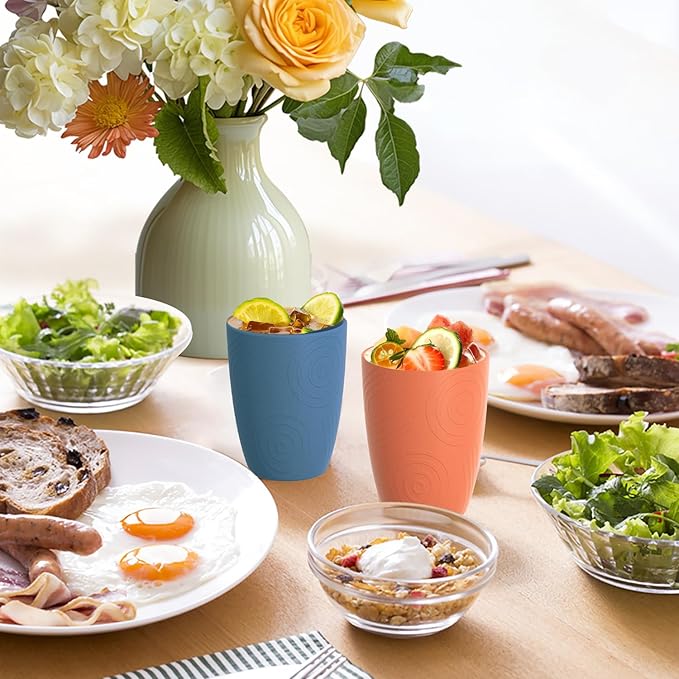 - USER-FRIENDLY: Our drinking cups come as a set of 4, each in a different color, making it easier to tell your cup apart. These vibrant colored cups set is a great addition to any college dorm, first apartment, RV, or camper, and they also make the perfect gift. Plus, these water tumblers are stackable, saving you space.